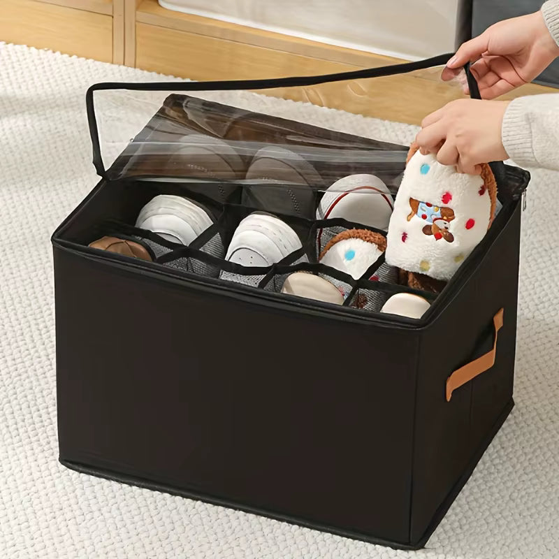 Space-Saving Foldable Oxford Storage Box with Clear Lid, Stackable Shoe Organizer Box Multi-Purpose Solution for Shoes, Clothes